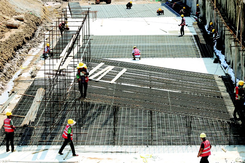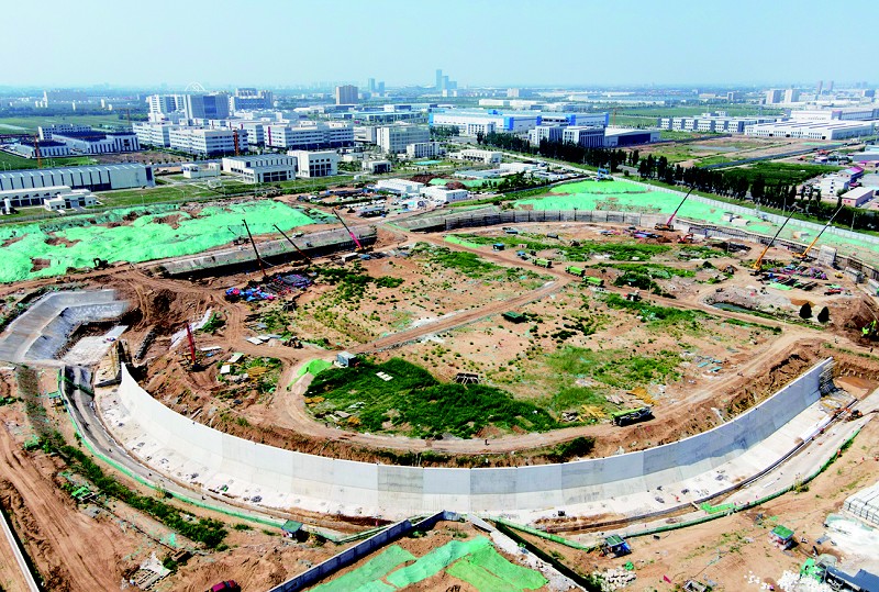 走进施工现场,在技术人员的指挥下,大型吊车将钢筋吊运到指定位置,工人或扎绑钢筋,或对钢模板进行电焊加固,为即将进行的混凝土浇筑工作做准备。浇筑完成的池壁呈圆环状向远方延伸。“目前,池壁浇筑已经完成50%,预计将在8月底启动池底建设。”现场负责人介绍,为确保项目顺利推进完成,项目部在抓好现场安全管理的同时,针对夏季高温特点,通过错峰施工,有效避开高温时段,并在现场备足防暑降温物资,确保工人身体健康。“近期以来,项目部加大了人力、机械投入,在场施工及技术人员超过200人。”现场负责人介绍,为扎实做好防汛工作,现场准备了40余台抽水泵及其他防汛物资,并时刻关注天气变化,以便及时应对可能出现的情况,确保项目顺利推进。