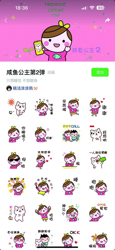 2.如果要查看该表情包的专辑,点击“查看专辑”,页面跳转。喜欢该专辑,点击“添加”,就添加上了该表情包的专辑。