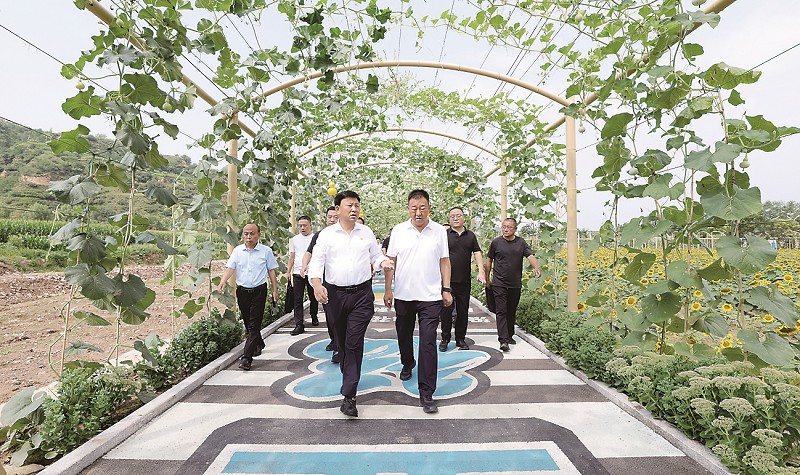 在严村,廉海平一行观赏了油葵田,察看了文创港民宿的装修风格、设施配置等情况;在永红村,走进9D电影院进行模拟场景体验;在归化村秦家崖,实地察看漂流项目的建设进展;在大东沟森林旅游度假区,深入一号营地、三号营地、林麓度假区等区域,亲身体验了景区观光路、茶社、真人CS与丛林穿越项目,仔细了解度假区民宿的装修细节、户型设计理念等情况。