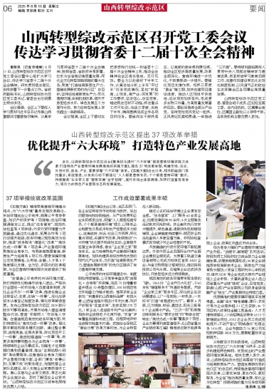 山西转型综改示范区召开党工委会议传达学习贯彻省委十二届十次全会精神
