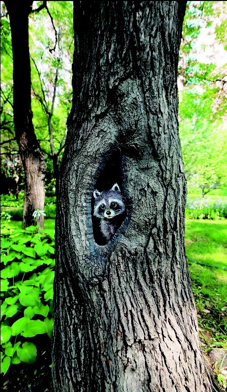 确定了要在树洞上作画,画些什么,成了刘宇首先需要考虑的问题。“一般是先逛公园,看到一个树洞后,回家构思。”刘宇说,迎泽公园树洞大小不一,奇形怪状,画花草,太普通;画人物,不太好布局。最终,她决定画些憨态可掬的小动物,既兼顾尺幅,还可以增加趣味性。绘画之前,刘宇还会根据树洞的形状、大小等,设计所绘小动物的形象及动作。