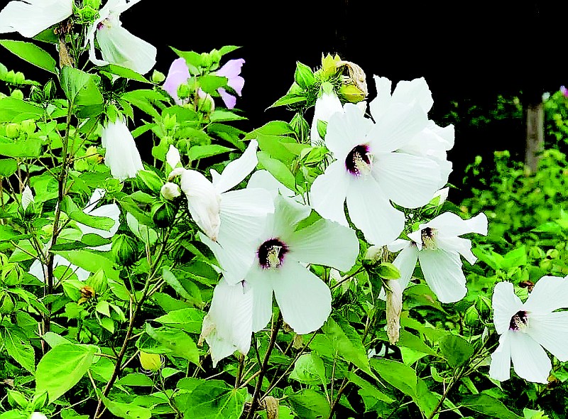 芙蓉葵花色丰富且鲜艳亮丽,花色有深紫红、桃红、玫瑰红、粉红、浅粉、白色等,且会随着一天中气温的起伏而改变。清晨,花朵初绽,其色彩洁白或浅粉,随着阳光的升温和午后时分到来,花瓣逐渐染上深红,令人叹为观止。