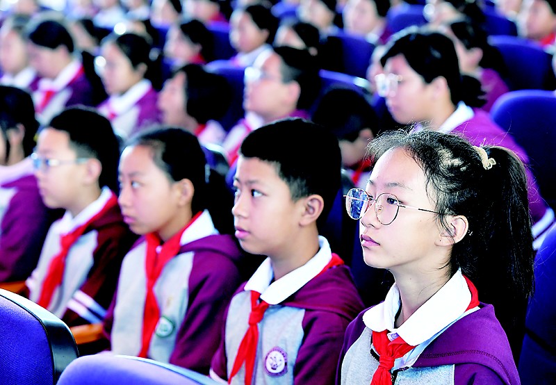 在杨宝利的讲述中,同学们了解到古建筑当中的鸱吻又叫鸱尾,是中国古建常见的建筑构件,一般用在屋脊正脊两端作为装饰。“我知道,传说龙生九子,鸱吻是其中之一,龙生于水,飞于天,把它放在屋脊上,除了用作装饰物,也有防火的寓意。”现场,一名同学的抢答引来杨宝利的表扬和同学们的掌声。