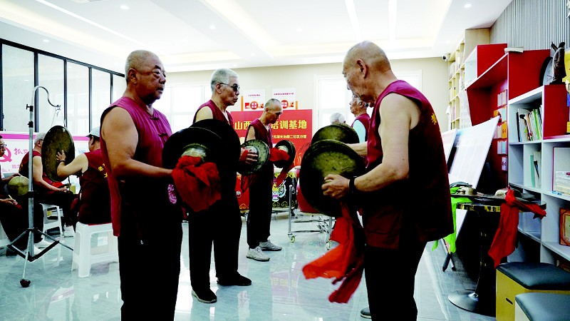 为了让传统的太原锣鼓演奏艺术传承下去,2024年,山西鼓乐培训基地成立。山西鼓乐培训基地每周举办一次培训活动,只要爱好锣鼓,都可以免费参加。培训基地设在太原市营盘街道统建宿舍小区党群服务站里。开课一年来,每周都会有很多锣鼓爱好者前来学习,最多的时候一节课能达到60多个人,但是,在这些老艺人看来还远远不够。传统文化的保护和传承,除了他们的坚守外,还需要政府的政策支持,以及更多人的参与。
