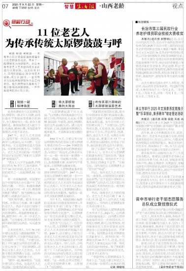 11位老艺人为传承传统太原锣鼓鼓与呼