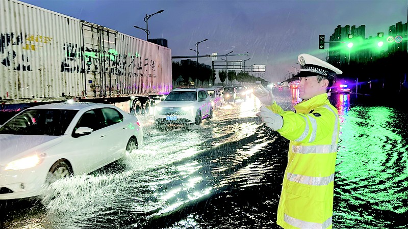 险情就是命令,快速处置是关键。强降雨过程中,综改交警严格落实“第一时间发现、第一时间处置”的要求。无论是接到群众求助,还是在巡逻中主动发现积水险情,他们总是迅速赶赴现场。对于积水较浅影响通行的路段,立即摆放警示标志,引导车辆减速绕行;而对于积水较深、存在严重安全隐患的路段,则毫不犹豫地采取封闭措施,严防车辆盲目涉水引发险情。综改交警冒雨站在封锁线前,不厌其烦地向过往市民解释情况,指引绕行路线,那一片片荧光绿在灰蒙蒙的雨幕中格外醒目,成为了市民心中可靠的路标。