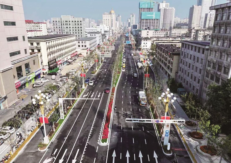 机动车道维持双向6车道,在十字交叉口增加了一条车道,有效提升了路口通行效率,缓解了高峰时段的拥堵压力;公交停靠站设在机动车道旁,让公交车停靠时不再截断主路车流,在提升市民乘车安全性的同时,也让机动车道通行效率显著提高;机动车道、非机动车道、人行道分离通行,非机动车道由原先的1.5—2米拓宽至3.5米,同时增设绿化隔离带,让骑行更安全舒适。