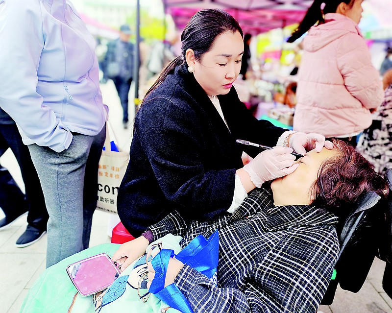 “奶奶,眉毛修好,人立马就精神啦。”当天的“银发美容角”引得爱美的爷爷奶奶们跃跃欲试。只见专业美容师手持眉刀、眉笔,正化身“美丽魔法师”,为排队的爷爷奶奶们精心修剪眉形。