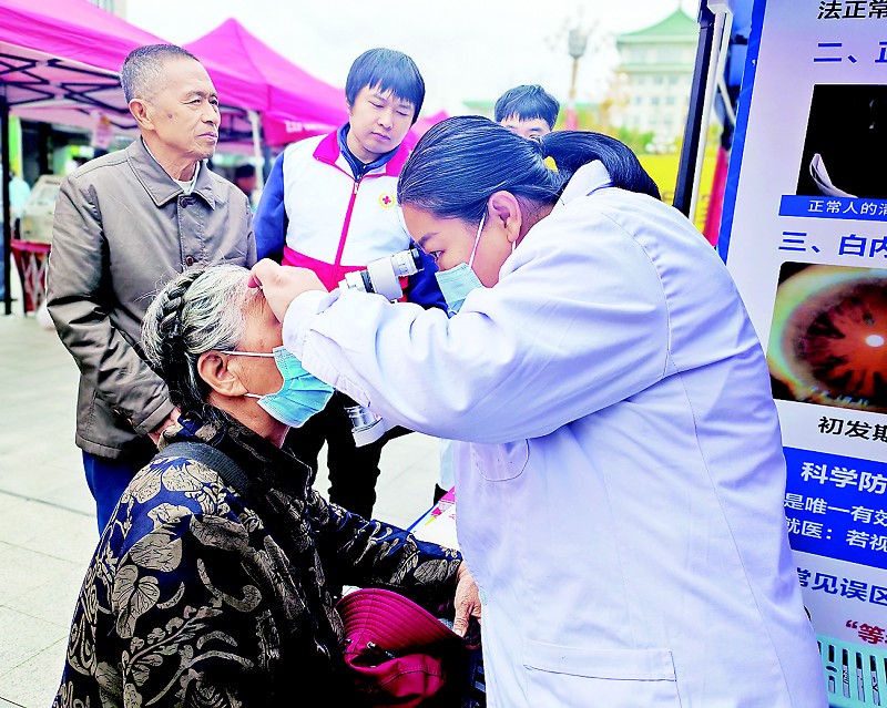 “奶奶,您往这台仪器里看,里面有个小房子。”医生们耐心引导着大家进行眼底检查,这台神奇的设备能直接“看”到眼底的血管和神经,许多潜在的健康隐患能及时发现。在白内障筛查区,医生一边检查一边用最通俗的语言解释:“就像相机镜头变模糊了,咱们现在就是看‘镜头’的情况。”