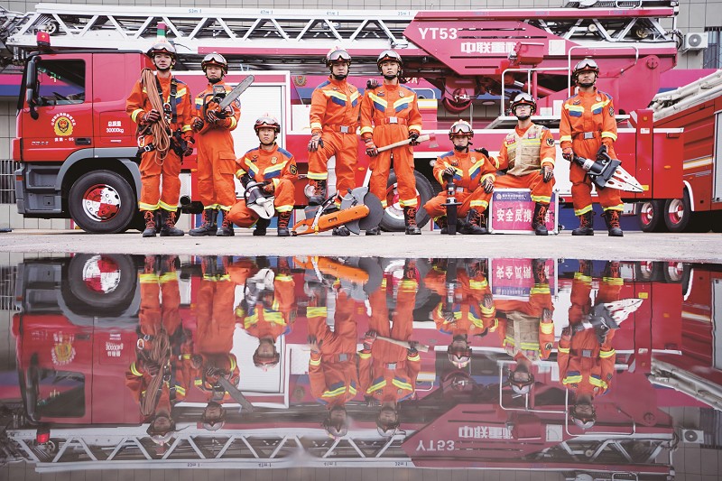 活动中,县摄影家协会的十余名志愿者深入营区,用镜头聚焦消防工作的多个维度。他们细致记录了训练塔下队员们的矫健身影、器材库内整齐划一的装备、荣誉室内满载荣光的奖状奖牌,并为消防救援人员拍摄了精神抖擞的集体合影与个性化的个人风采照片。从展现力量感的水带操持,到流露从容的“战车”倚靠,再到队友间温情互动的瞬间,每一张照片都精准捕捉了“火焰蓝”的坚守、担当与专业,凝聚着对“火焰蓝”的深深敬意。