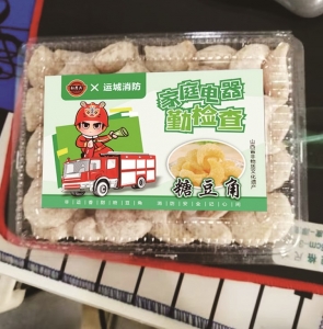 将消防元素融入地方特产,在产品的包装上直接呈现消防元素,即增加了地方特色产品的趣味性,又进一步传播了消防安全理念,一举两得。