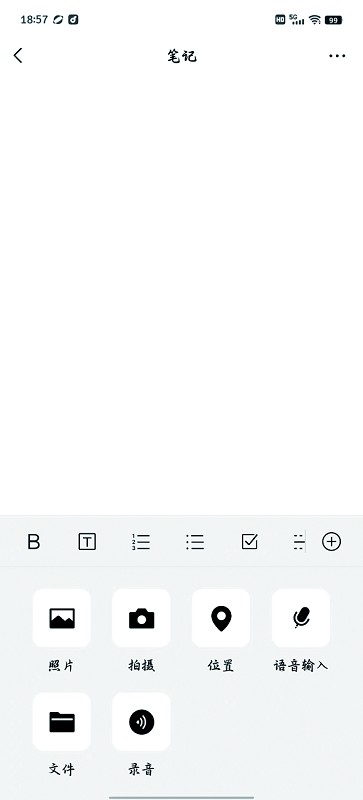 2.在该界面,点击右上角的带圈的“+”。界面跳转,进入到笔记编辑界面,点击右下方带圈“+”。