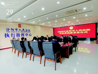 汾阳法院举办国家司法救助金集中发放仪式。16名困难群众满怀期待与感激,接过法院为他们送上的“法治温暖”——总计48.55万元的司法救助金,这笔款项将为他们暂时的困顿生活注入新的希望。活动特别邀请人大代表、政协委员及检察院同志出席仪式。
