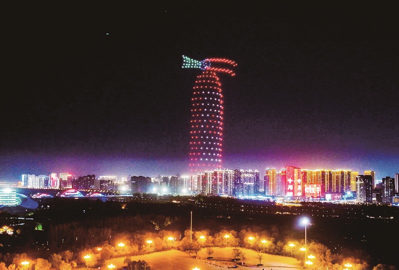 全城亮屏机群飞舞三晋夜空流光溢彩