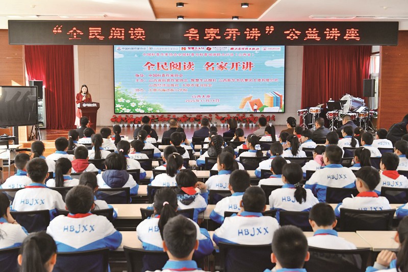 11月14日上午,由中国科普作家协会指导,山西省科普作家协会、智慧生活报社、山西新华书店集团太原有限公司、山西经济出版社、太原市读书协会等联合主办的“全民阅读名家开讲”科普阅读推广活动第四场在太原市迎泽区海边街小学校举办。知名作家、历史学者树梁以其独树一帜的“评书讲史”方式,给同学们带来题为《梦回大唐天宝年重游北都太原府》的精彩讲座,他凭借深厚的史学功底与精湛的评书技艺,将枯燥的历史文化知识化为生动的“声音戏剧”。