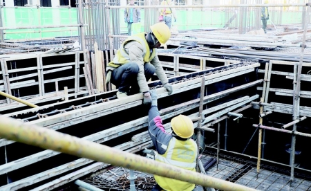 走进施工现场,钢筋绑扎、模板支设、混凝土浇筑等工序有序推进。“项目部强化混凝土防冻及养护,浇筑前搭建保温棚,浇筑后铺设防寒毡,保证低温环境下施工质量不受影响。”项目现场负责人介绍,截至目前,小学教学楼3、初中教学楼1、初中教学楼2、学生宿舍、餐厅、综合楼B完成封顶,图体中心一层基本完成,小学教学楼2、3进入地面以上施工,操场看台正在进行基础施工,综合楼A即将启动。“安全是不可动摇的底线,质量是必须恪守的生命线。”项目现场负责人表示,工期越是紧张,越不能有丝毫松懈。为此,项目部坚持把规范施工、精细管理贯穿始终,将在防寒保暖、做好安全生产和环保工作的前提下,科学统筹、全力冲刺,高质量推进工程进度。 记者 乔建彬 文/摄