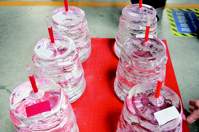 车间里,在众人的目光中,技术人员将蓝宝石晶碇从晶体生长炉中取出。晶体色泽透亮,外形圆润,像是一个“大冰块”。出炉的晶体引领当前市场需求,完全满足蓝宝石衬底片行业技术规格标准,可以生产出一系列高品质的电子器件等产品。