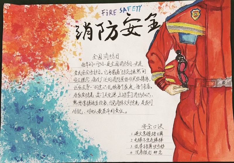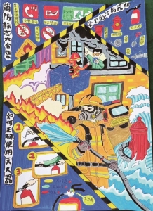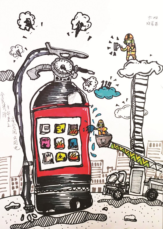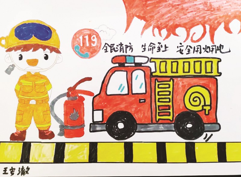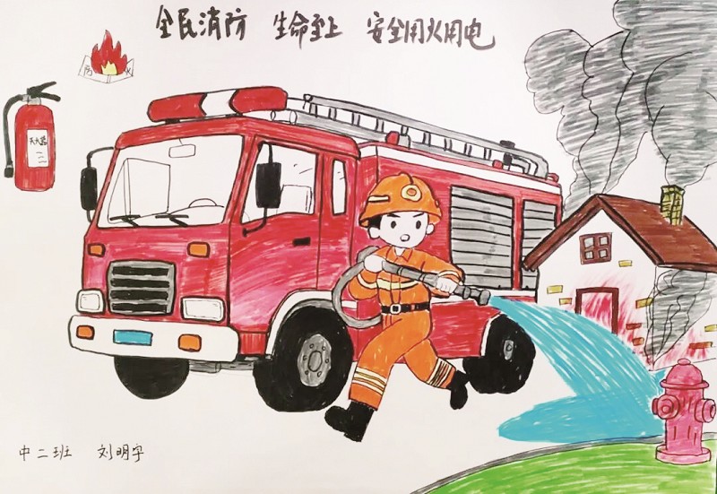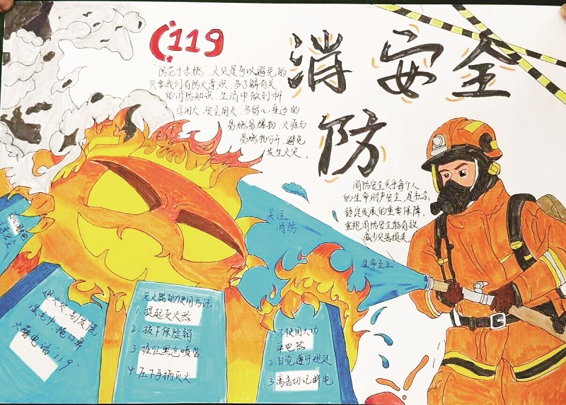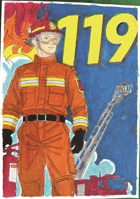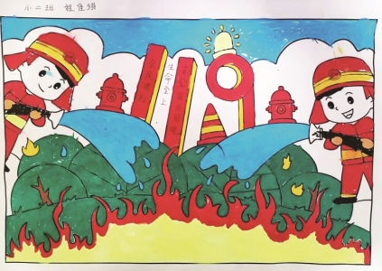 孩子们充分发挥想象力,用手中的五彩画笔勾勒心中的消防场景:有的描绘消防员身着战衣逆行火海的英勇瞬间,有的图解家庭防火“小妙招”,有的画出消防车疾驰救援的动人画面……每一幅作品都充满童真与创意,表达了对“火焰蓝”英雄的敬佩。“我画的是消防员叔叔在火场里救人,他们特别勇敢!”一名小学生自豪地展示自己的画作,并分享创作思路。这些绘画不仅是孩子们学习成果的展现,更是消防知识在他们心中生根发芽的见证。
