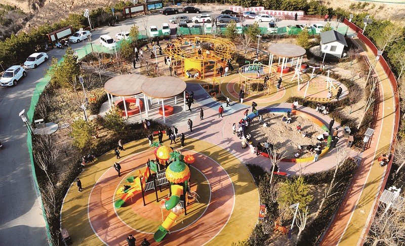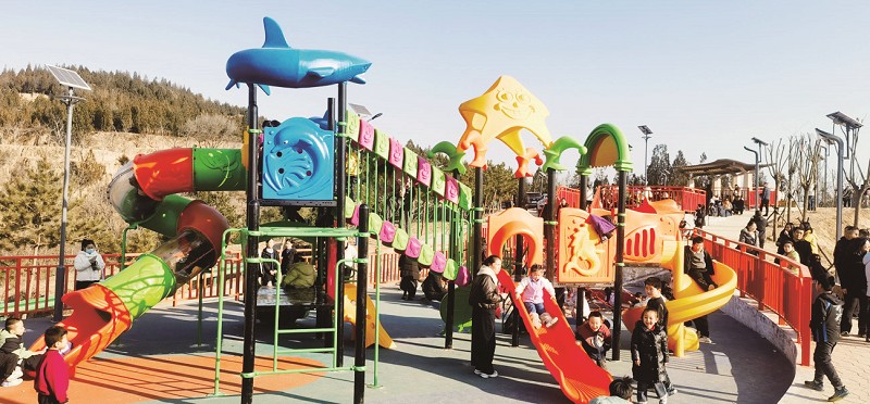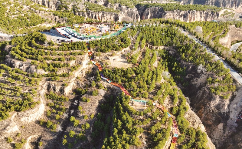 据介绍,临县城区东山森林康养项目是依托国家储备林及林业扶贫项目建设的重大民生工程,项目总投资1.2亿元,总规划区域面积10970亩,分为东山片区和气象站片区。项目于2024年10月开工建设,到今年11月底,建成投用。项目充分利用原有道路和林中空地规划实施了9条一级康养步道(防火通道)8.41公里,26条二级康养步道11.36公里,一级游憩点27个,二级休息点77个,进村道路整修1.65公里,对已有森林植被进行完善提升。项目覆盖城区和临泉镇都督村、寺家塔村、前甘泉村、东峁村、东峪沟村、柏树沟村、田家沟村等7个村庄。东山片区以“一山两园三区”(一山:东山综合森林康养基地;两园:森林生活园、森林体验园;三区:生活休闲区、森林康养区、文化活力区)为核心规划建设,结合片区村镇文化与地域属性,拓展山上与山下的发展空间,形成生活休闲、森林康养、文化活力三核鼎立的全业态城市文旅综合区。东山片区北部,打造车行10分钟、步行20分钟的森林生活休闲区,在山中核心区规划了丰富的康养步道系统,与村落和车行道路进行有效连接,打造了完善的休闲步道路线。在道路与步道沿线,设计了伞头广场、唢呐广场、道情广场、观景塔等多种主题风格的游憩点,充分展现风土人情和伞头秧歌等民俗文化。东山片区南部,注重森林康养与文化活力,结合地形条件,因地制宜设计了步道与车行系统,并根据不同的主题设计了儿童游园、七彩步道、露营基地、夏蝶广场等不同的游憩点,为各类人群提供了全方位的康养休闲体验;文化活力区,山下以都督村的历史文化故事(抗日名将续范亭)进行引流,山上以红色革命老区为出发点,打造一条红色历史文化轴,将南区进行有效串联,建有党建广场、党旗广场、红色长廊等,营造浓厚的红色氛围,让人民群众充分感受红色教育带来的精神与活力。气象站片区结合现地特征,依托现有防火通道,精心设计建设“儿童欢乐谷”游乐场、儿童趣味区和游廊游憩点。