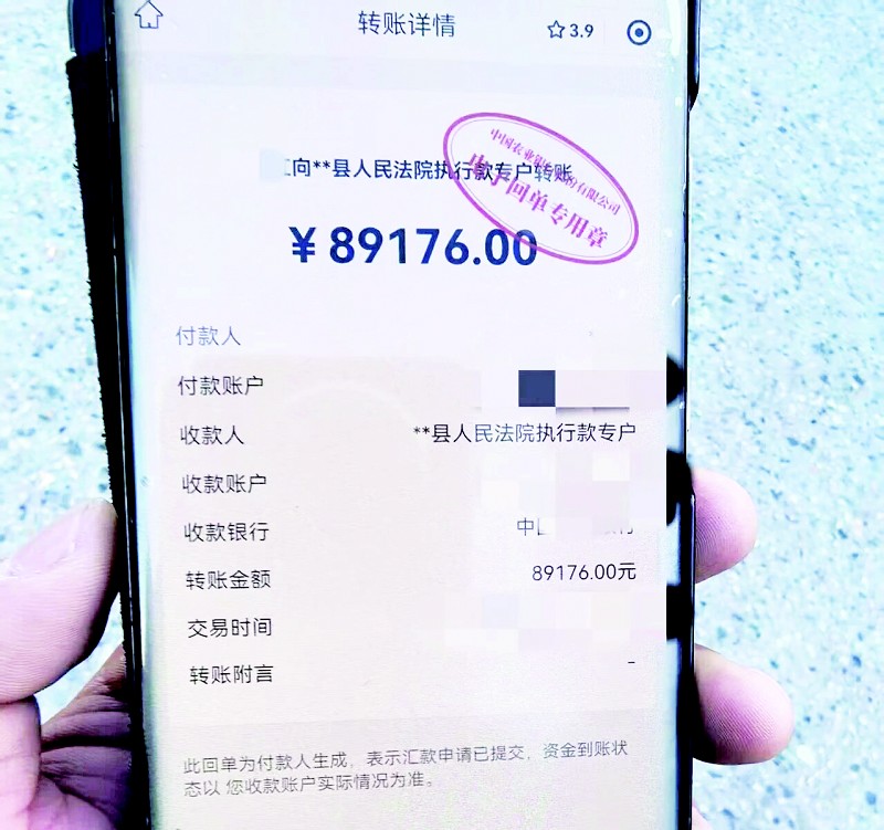 法律的铁拳击碎了被执行人的侥幸心理!眼见法院动真格,张某某慌忙电话联系亲友筹措资金,其妻子也当场认错并诚恳道歉。10时许,89176元执行款汇入法院账户!这场跨越晋冀两省的“闪电执行”圆满收官!