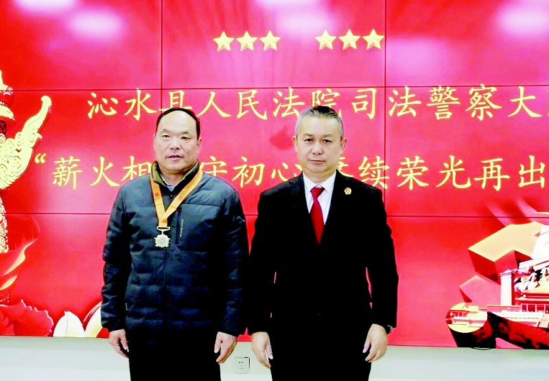 沁水法院举行退休干警退休荣誉章颁发仪式,院党组书记、院长杨守顿为退休司法警察侯泰山颁发荣誉徽章。侯泰山分享了职业生涯中的宝贵经验与深切感悟,用朴实的话语、鲜活的事例,传递着对司法事业的无限热爱与执着追求,让在场年轻干警深受触动、备受鼓舞。