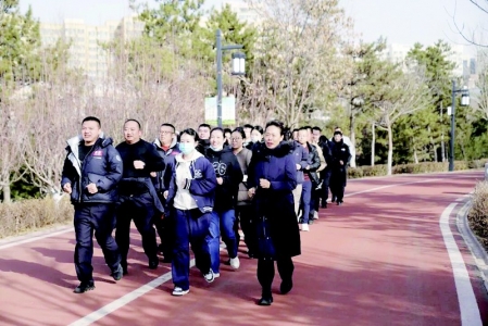 临汾铁路运输法院开展“警徽闪耀·激情奔跑”主题跑活动,跑道上司法警察们精神饱满、你追我赶,以奔跑姿态奔赴新年之约。