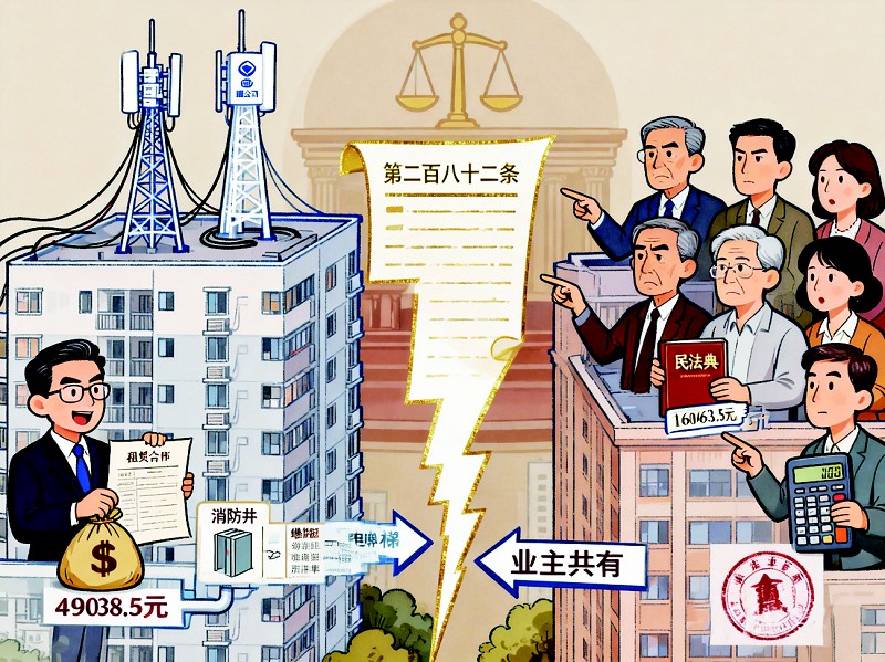 人民法院经审理认为,《中华人民共和国民法典》第二百八十二条规定:“建设单位、物业服务企业或者其他管理人等利用业主的共有部分产生的收入,在扣除合理成本之后,属于业主共有。”本案中,大厦楼顶属于建筑区划内业主的共有部分,某物业公司出租大厦楼顶设立通信基站属于利用业主共有部分开展经营活动,收益49038.5元在扣除用于改造、维修相关项目支出的32975元后,剩余收益16063.5元应当退还该小区业主委员会。