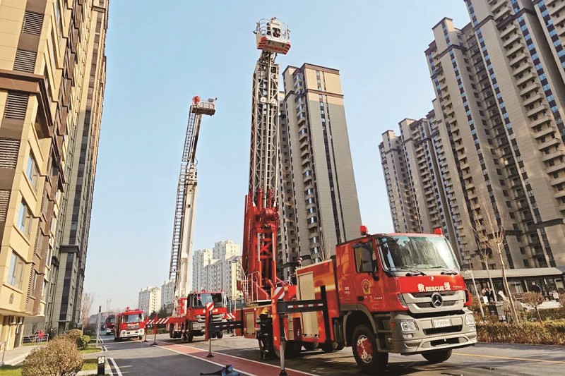 接到报警后,大队迅速调派高层灭火救援力量赶赴现场,指挥部随即成立,侦察、警戒、救人以及灭火等小组有序展开作业。云梯消防车迅速升起,靠近“起火”楼层;登高平台车打通户外救援通道;内攻搜救小组佩戴防护装备,携带破拆与救生器材,深入楼内逐层搜救。在各方配合下,“明火”被快速扑灭,“被困居民”被安全转移,并交由现场医疗小组进行处置。整个演练过程指挥有力、配合密切、行动迅速,有效检验了队伍的应急响应与协同作战能力。 记者 张彦
