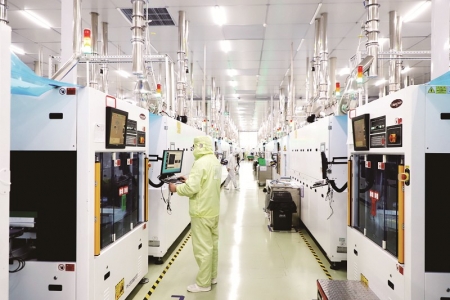 1月14日,山西转型综改示范区企业山西中来光能电池有限公司生产车间内,3条完成技改后的智能化生产线高速运转,生产繁忙。依托技术改造带来的产品效能提升,公司市场竞争力实现了整体跃升。 记者乔建彬摄