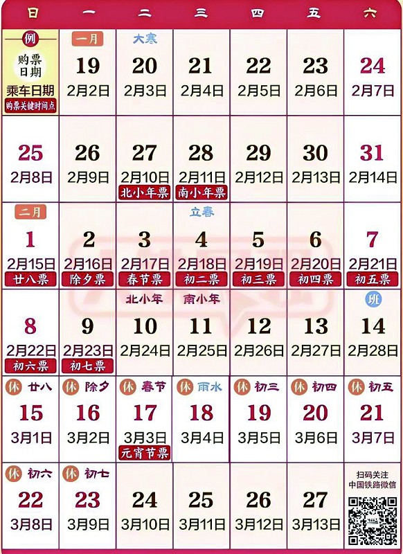 春运火车票今起发售购票日历请收藏