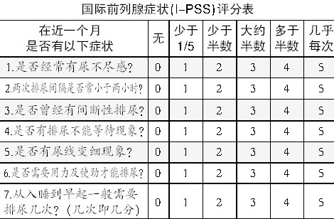 国际前列腺症状(I-PSS)评分表