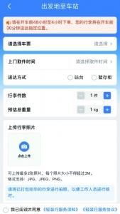 3.选择车票,填写寄件人信息,取件地址,行李数量、重量等详细信息,接着根据需求,选择送达方式。