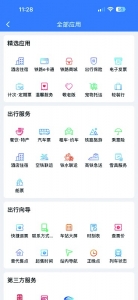 1.打开铁路12306App或者微信小程序,在首页中部应用处往左滑,找到“全部应用”→“精选应用”,点击“轻装行”模块。