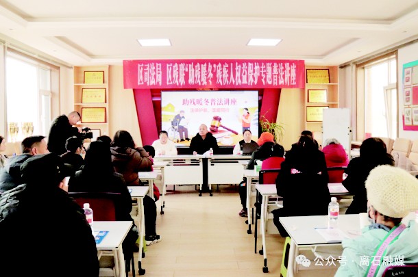 本报讯 1月22日,离石区残联和区司法局联合举办“助残暖冬”残疾人权益保护专题普法讲座。
