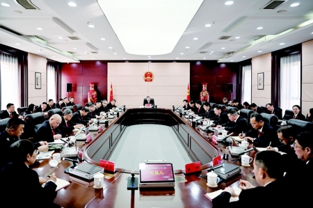会议指出,刚刚召开的中央政法工作会议立足关键时期举旗定向,围绕加强“五大建设”对做好2026年政法工作作出部署。全国高级法院院长会议总结工作、分析形势、部署任务,为我们在新的一年做好司法审判工作明确了具体方向,提供了具体路径。