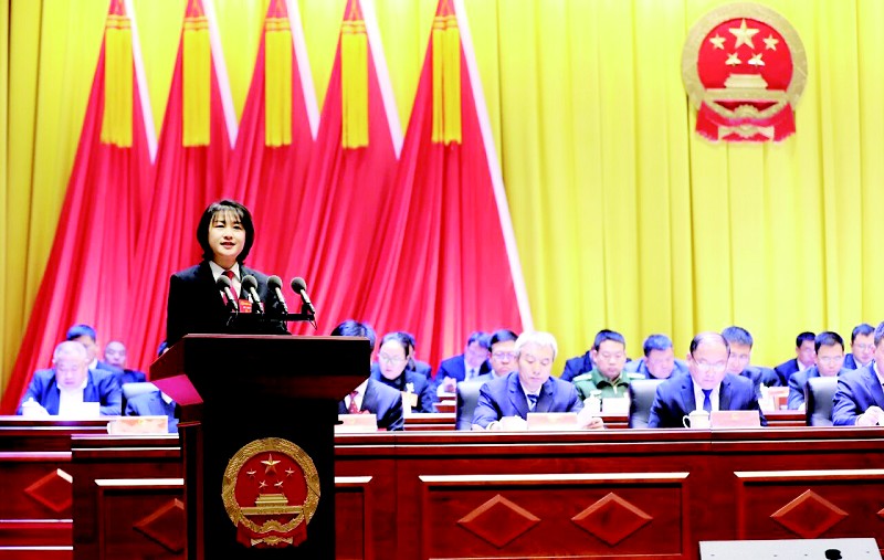 岚县法院党组书记、院长潘文在岚县第十七届人民代表大会第七次会议上作报告。2026年,岚县法院将强党性、铸法魂,坚持正确政治方向;强担当、办铁案,护航经济社会发展;转理念、促改革,满足多元司法需求;强能力、助履职,建设学习型机关;强管理、树形象,锻造过硬法院队伍。